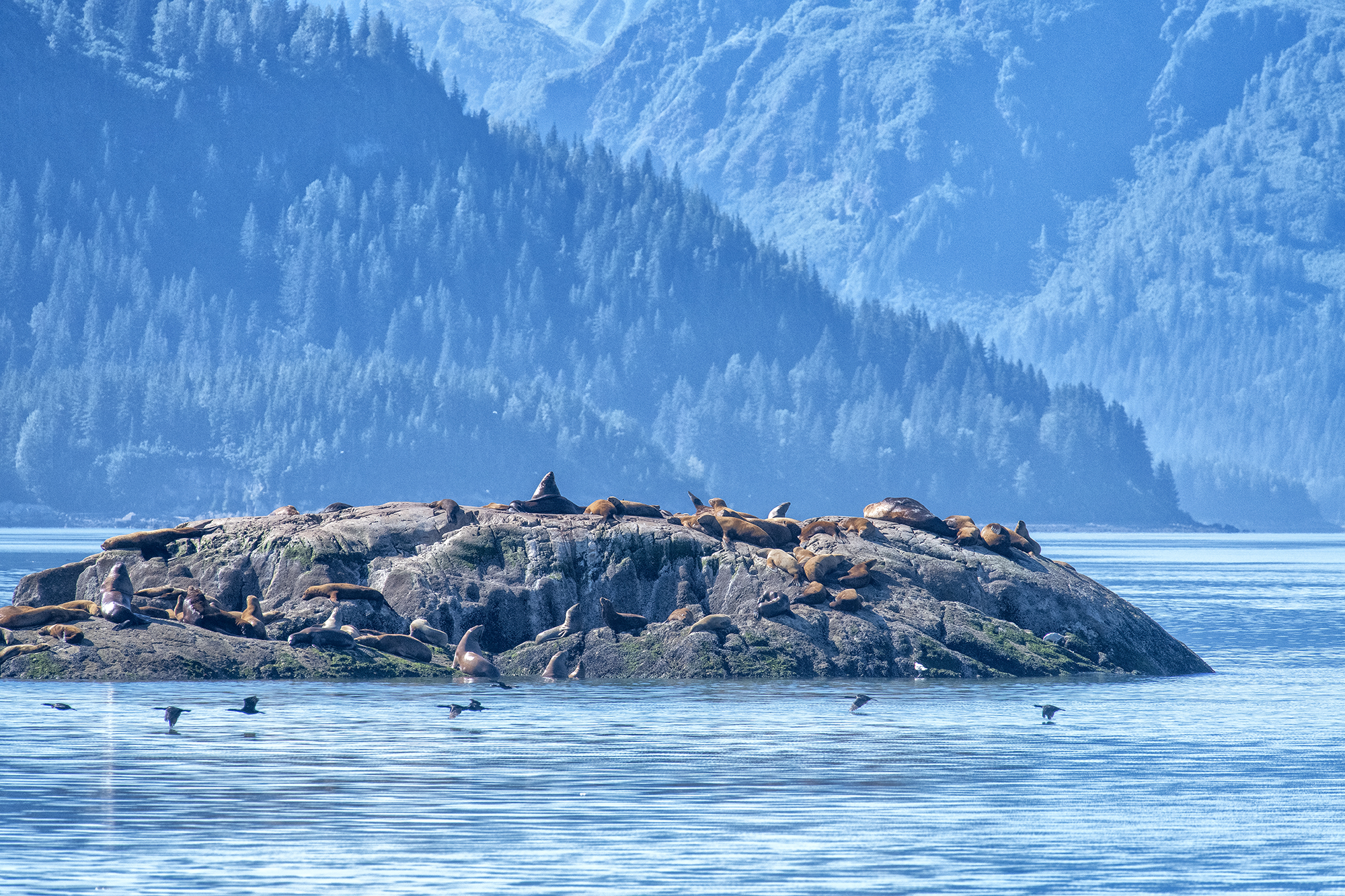 Our first day was spent touring Glacier Bay, a national monument established in 1925, and officially made a national park in 1980. The bay is 65 miles in length, running north from Icy Strait. It was first visited by Capt. George Vancouver in 1794, when the bay was covered in ice out to Icy Strait. Eighty five years later, John Muir visited by canoe and found the glacier receding as fast as a mile per year..