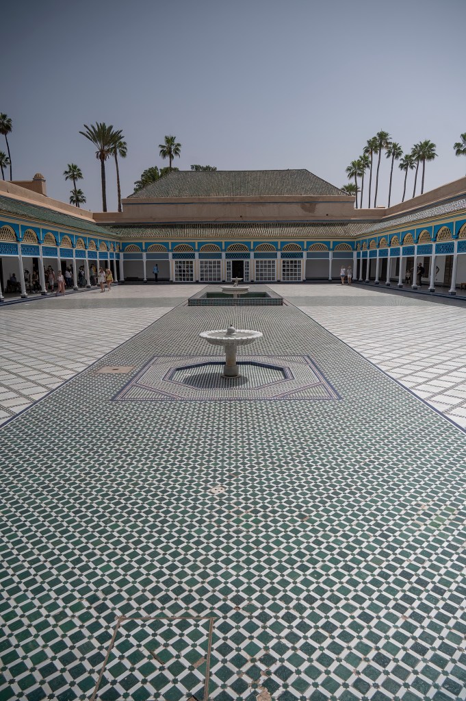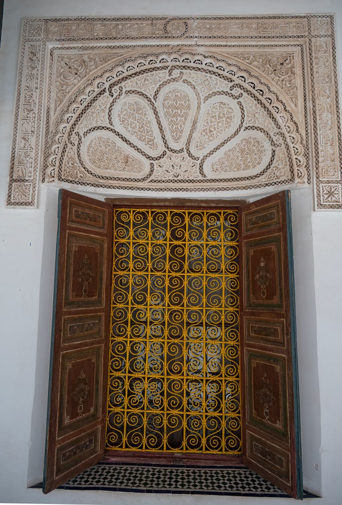 We then visited the Bahia Palace. This 19th century palace exemplifies the lavish lifestyle of the Moroccan elite. The property housed various Moroccan royals. The public areas are open and feature rounded entryways that lead to colorful mosaics and intricate latticework, as well as cool shady walkways that lead to vast, sunny courtyards and gardens.
