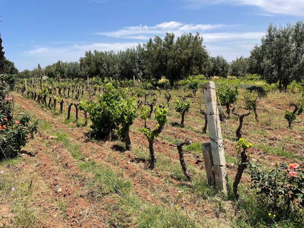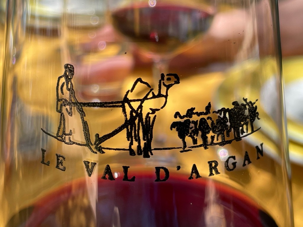 A few miles later, one can visit a local winery Domaine du Val d”Argan, established in the 1990’s by Charles Melia, a Frenchman from Chateuneuf du Pape; he still owns a small vineyard there as well. The winery grows a variety of grapes and produces several types, mostly in the Rhone style. We had a delightful lunch, with wine, in the sunny courtyard by the pool. One can also stay there.