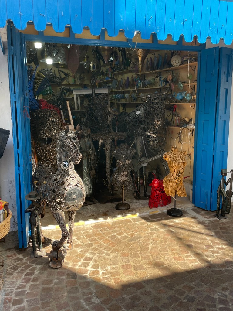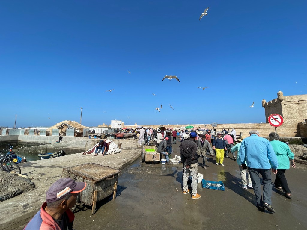 We engaged a guide for half a day. Highlights included a visit to a Jewish synagogue, a tour of the souks and the fish market and a visit to a cooperative making all kinds of marquettry from a hard wood grown in the area called thuya.
