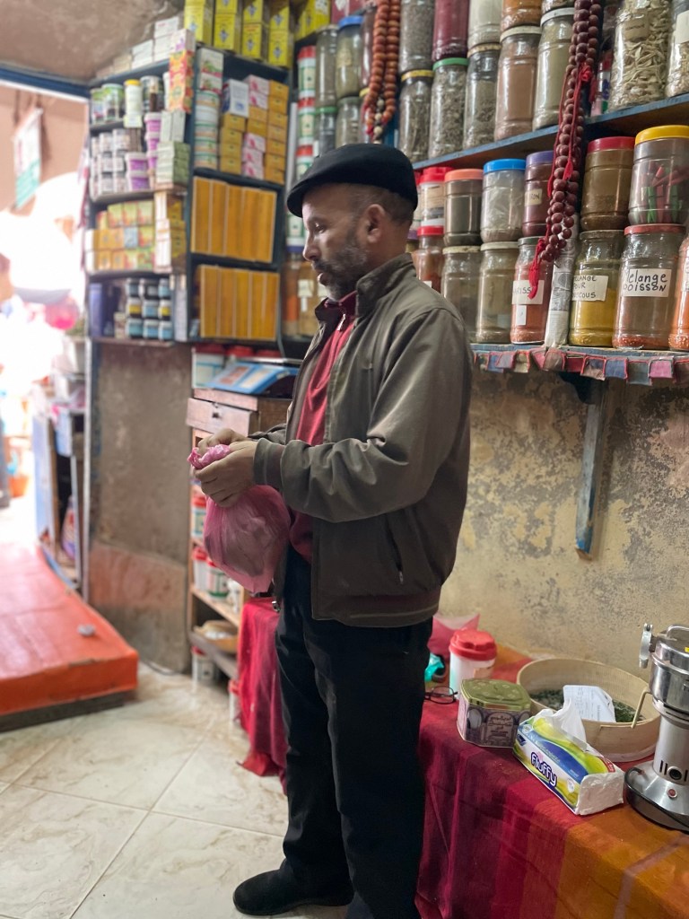 One visit we really looked forward to was a return to this spice shop, located just beside the fish market. Karen and I visited Muhammed Seddiki six years ago, and enjoyed seeing him again and buying an assortment of spices. These included several of his spice mixtures for fish, chicken and vegetables, and of course saffron.