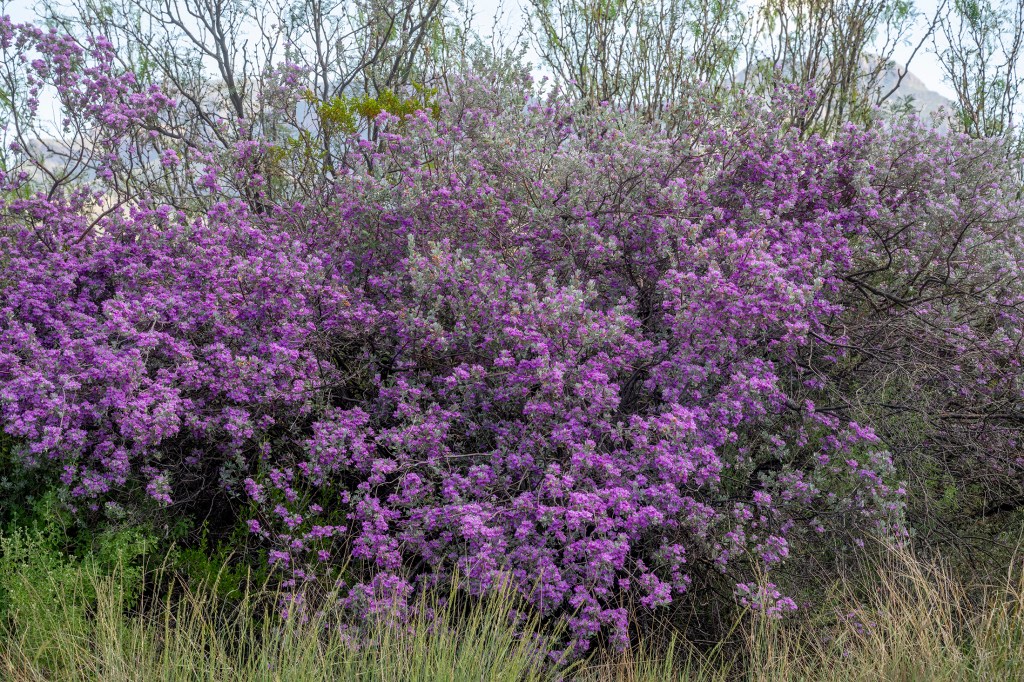 After breakfast the next morning and a visitor to Gage Gardens across the street, we headed south to Big Bend NP, an 800,000 acre park with spectacular views and varying terrain – mountains to desert, bordered on the south by the Rio Grande as it makes a big turn initially south, then north. Our first stop was at the Fossil Center with its’ excellently displayed dinosauric fossils and depictions of the area that was once 100′ under water. We then checked out the east end of the park down to Boquillas, followed by an enjoyable tour back to park central. With much recent rain, there was an unusual level of color especially with large areas of colorful Texas sage.