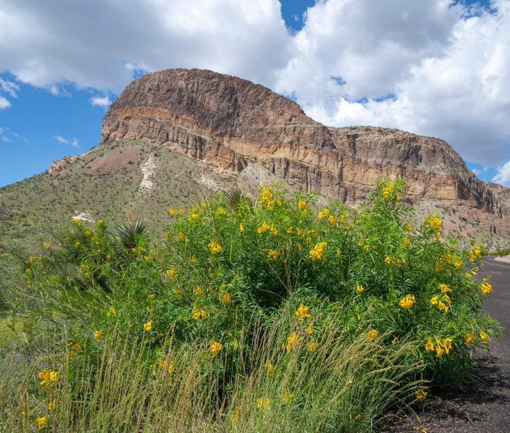 Then on to the park, from Chisos Basin at 5400′ elevation, and cooler weather, to the Ross Maxwell Drive with various stops along the way. There has been so much rain that the road from Castolon to Santa Elena Canyon was still closed due to high water in the Rio Grande. Nevertheless we had some wonderful views of a spectacular area.