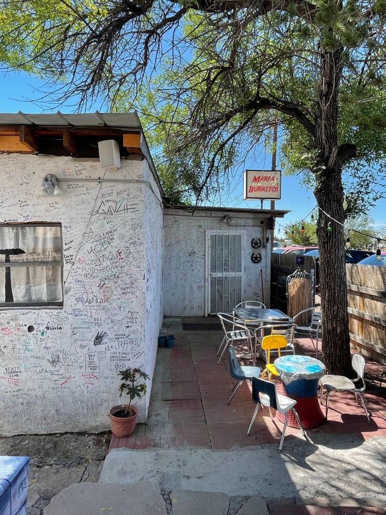 Arrived in Marfa at lunchtime. Chris found a highly rated burrito cafe; we stopped and ate great burritos in a very very casual environment, evidently visited by many well known people.