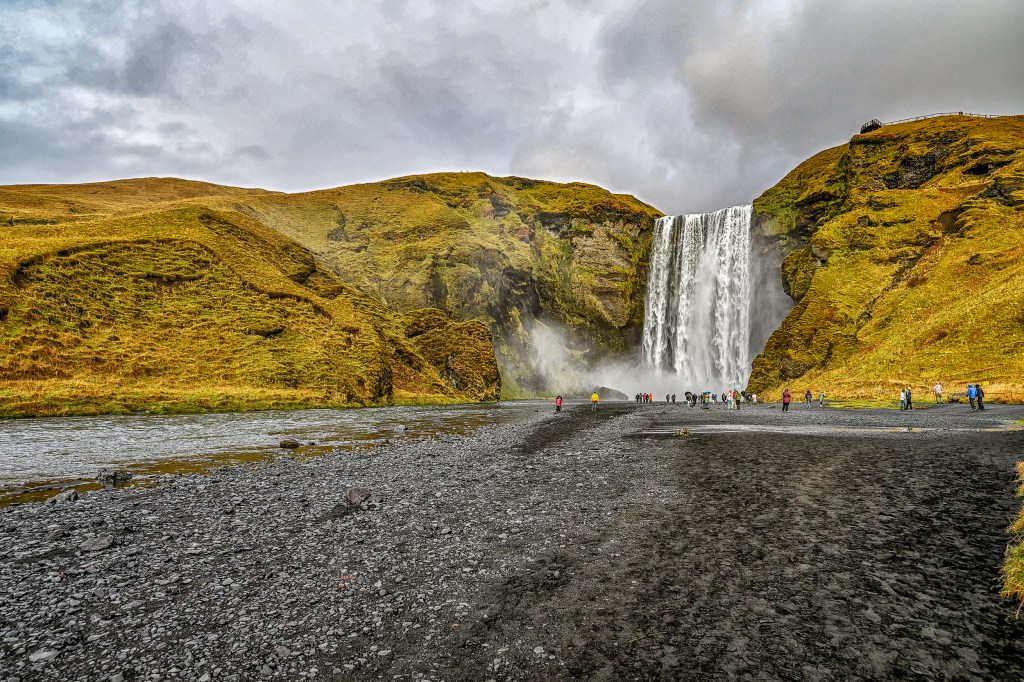 Iceland’s most famous waterfall Gullfoss is a spectacular double cascade dropping 32 m back into the Hvita River. The spray from the falls is rather intense, making timed tripod images difficult to get without the lens being covered in water droplets.