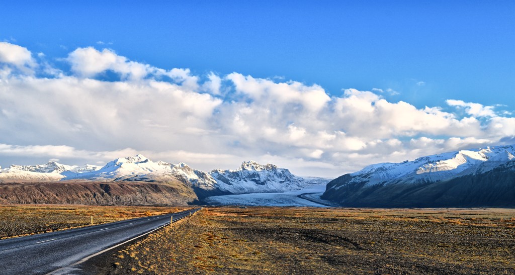 After a drive we began to see a large mountain range, identifies as Skaftafell located within a very large national park. The primary glacier is known as Skaftafellsjokull. This area is a huge national recreational area, and is simply spectacular.