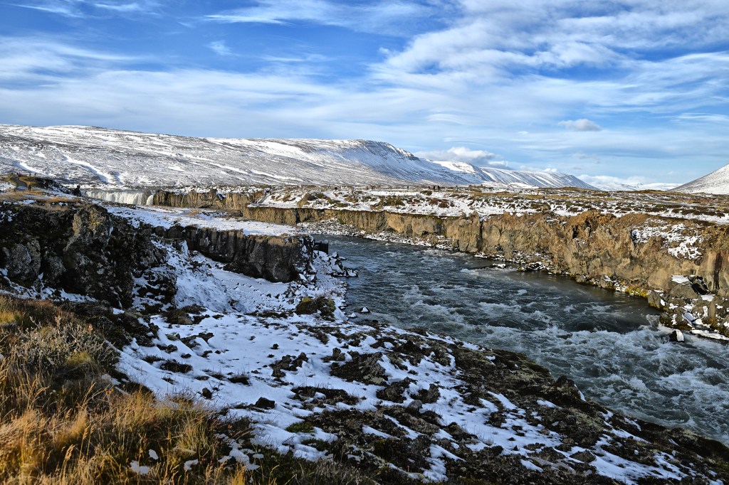 Godafoss rips straight through the Bardaralur lave field. It is definitely one of Iceland’s most beautiful waterfalls. Legend has it that the law speaker Porgeir was forced to make a decision on Iceland’s religion. On his way home he tossed his pagan carvings of the Norse gods after declaring the country would be a Christian nation. Thus the waterfall became known as waterfall of the gods.