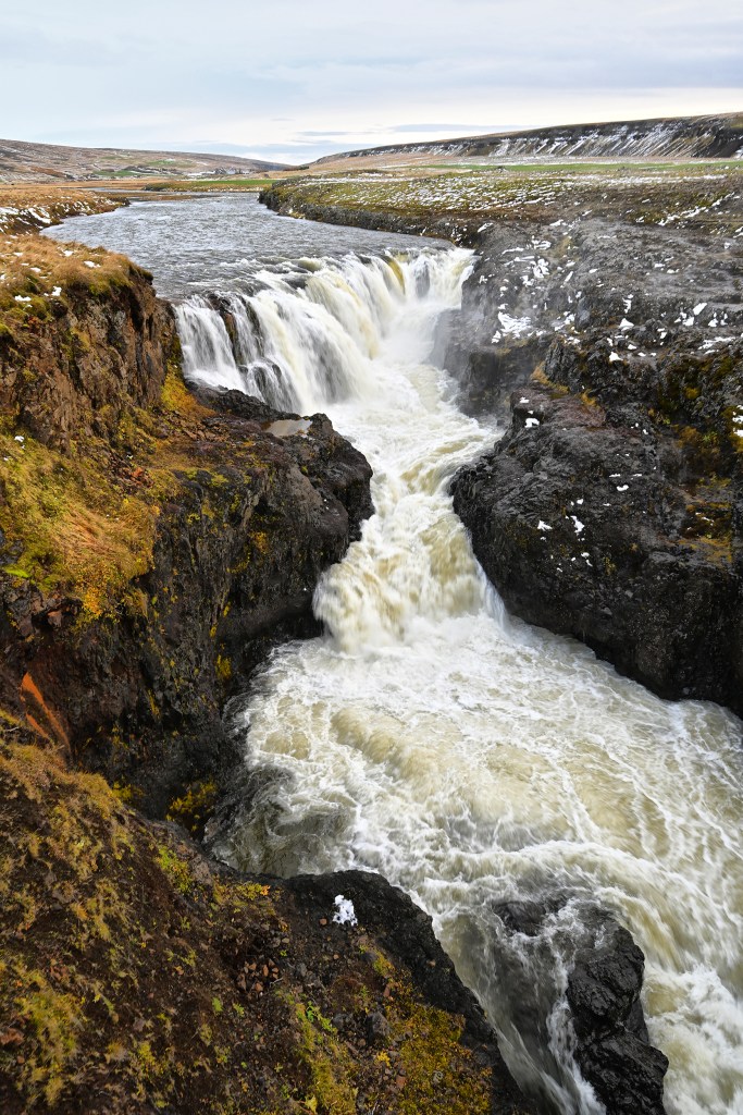 Our last stop was what our guide called a “canyon”, which turned out to be quite spectacular. Kolugljufar waterfall runs over into a rather deep canyon in a relatively flat area. Legend says that the troll Kola sleeps in the canyon, and fishes by hand for salmon or arctic char.