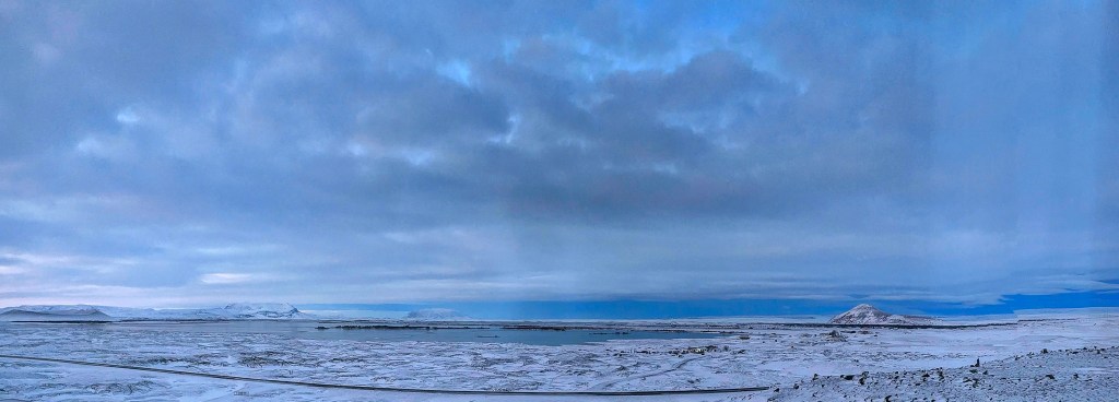 We spent two nights at the Fosshotel in Lake Myvatn, dining there both evenings. Myvatn is a calm, shallow lake at the heart of a volatile volcanic area that sits squarely on the Mid Atlantic Ridge. Nature’s violent masterpieces are everywhere: crazy colored mud pots, huge craters and jagged lava fields.. Most of the points of interest are linked by the lake’s looping road.