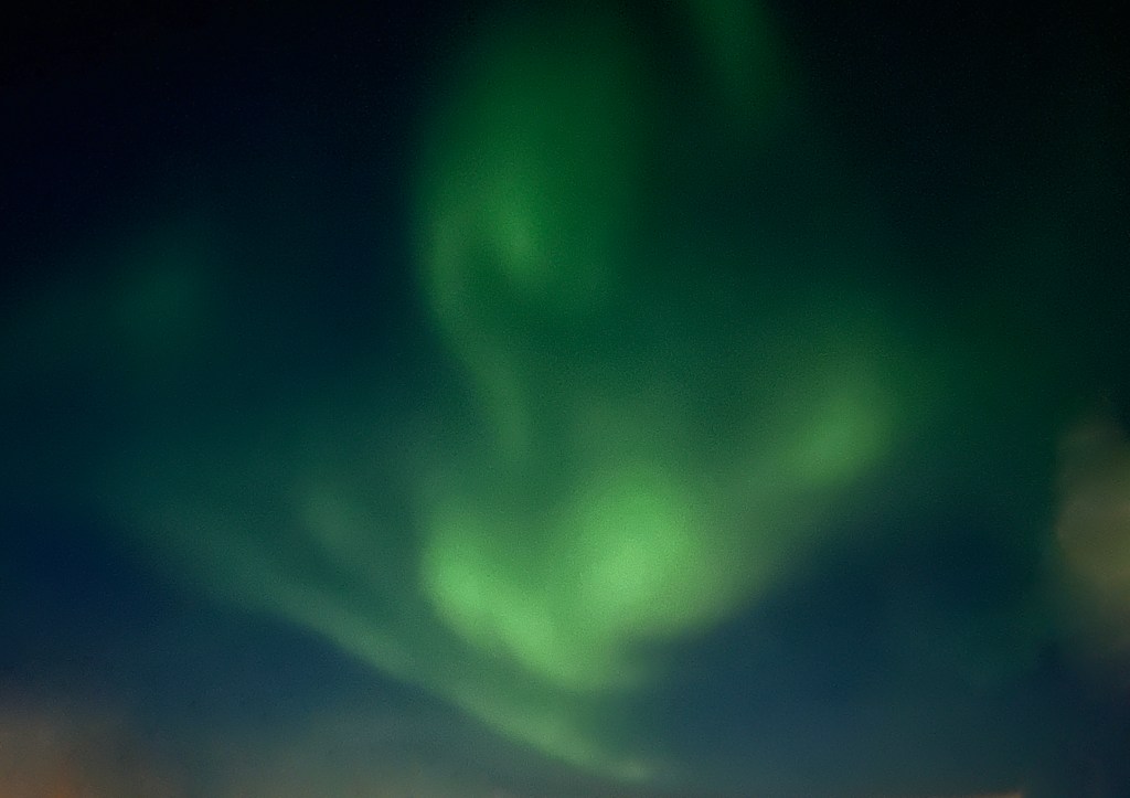 We spent a second night at The Fosshotel, and enjoyed another dinner there. After dinner we were treated to a brief view of the famous northern lights, our first and only view on the trip as many nights were cloudy. The first two images were shot by Karen on her cell phone.