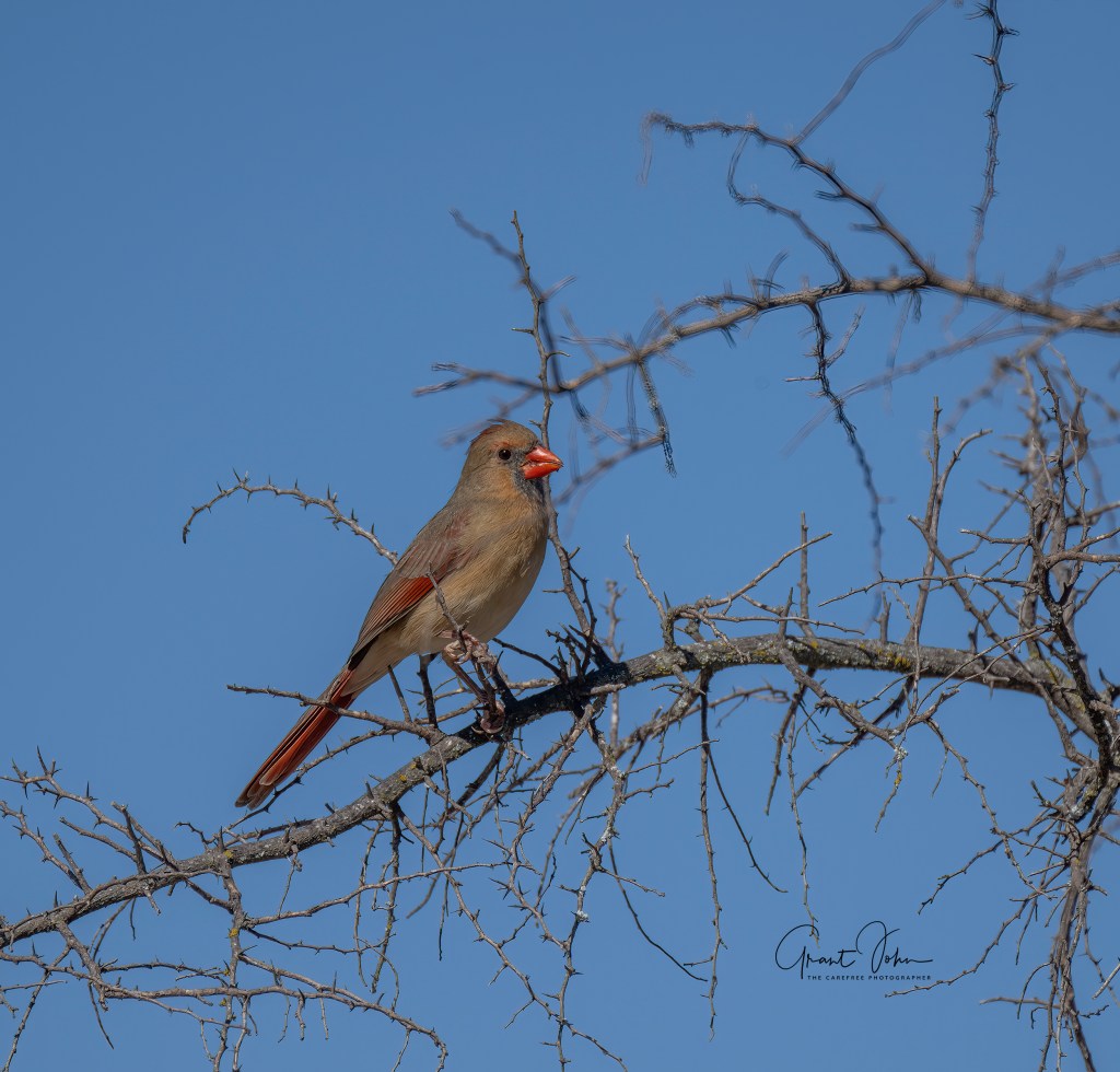 Three of us spent a day photographing birds at the LaLomita Photography Ranch, located just west of Uvalde, TX. The ranch is 20 acres in size, fairly heavily treed, with four shooting blinds. Each blind is surrounded with vegetation and has a small pond, several stump-like wood structures, some with a drip line. The bird population is generally quite good, and the birds fairly close to the blind. Thus sharp images with suitable backgrounds are normally achieved. Here are some recent images.