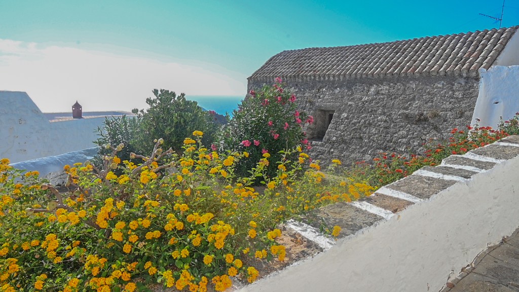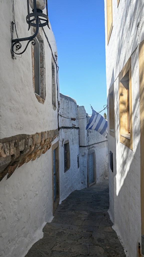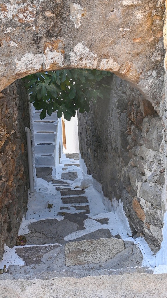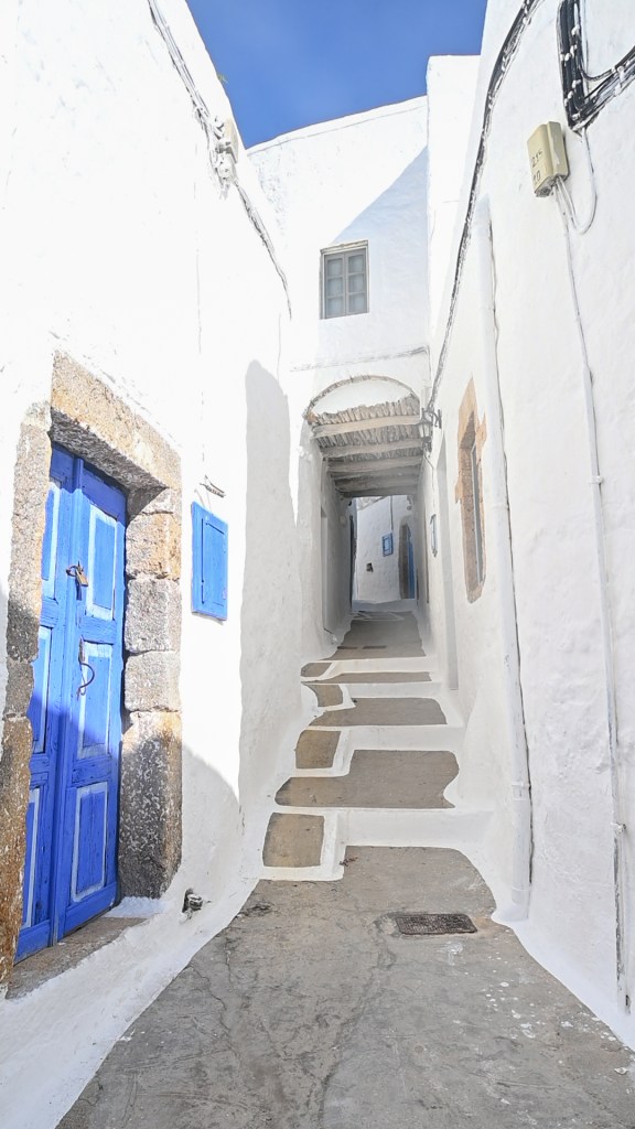 Patmos is one of the northernmost islands of the Dodecanese complex in the Aegean Sea. It is famous as the location where John of Palmos received the visions found in the Book of Revelation of the New Testament, and where the book was written. In 1999 the island’s historic center Chora, along with the Monastery of Saint John the theologian, and the Cave of the Apocalypse, were declared World Heritage sites because of their significance in Christianity. We found this to be a very pretty island with virtually no tourists! Principal towns include the port of Skala and the hilltop center of Chora.