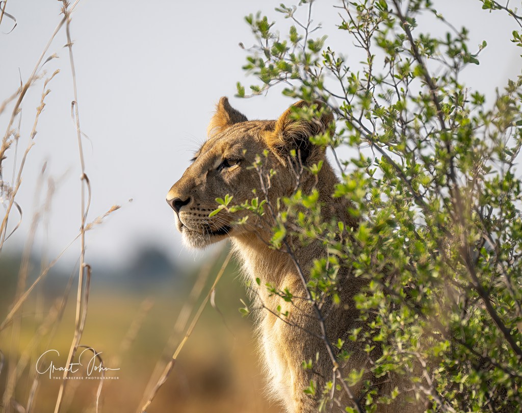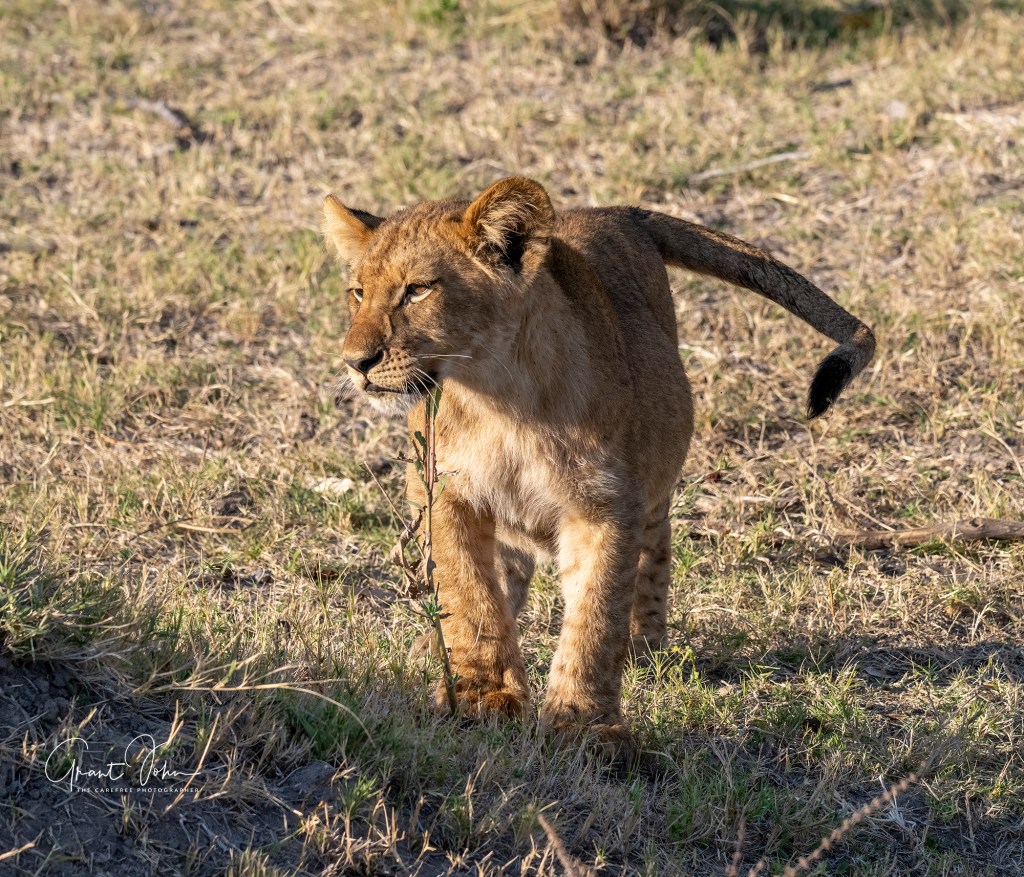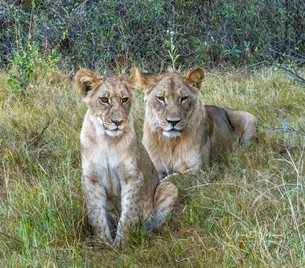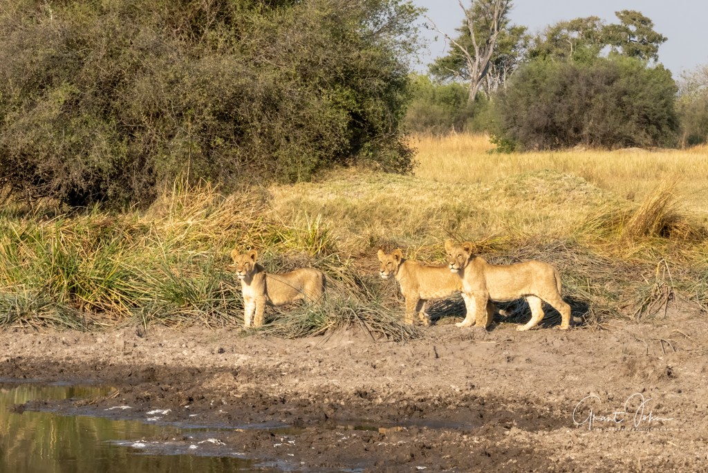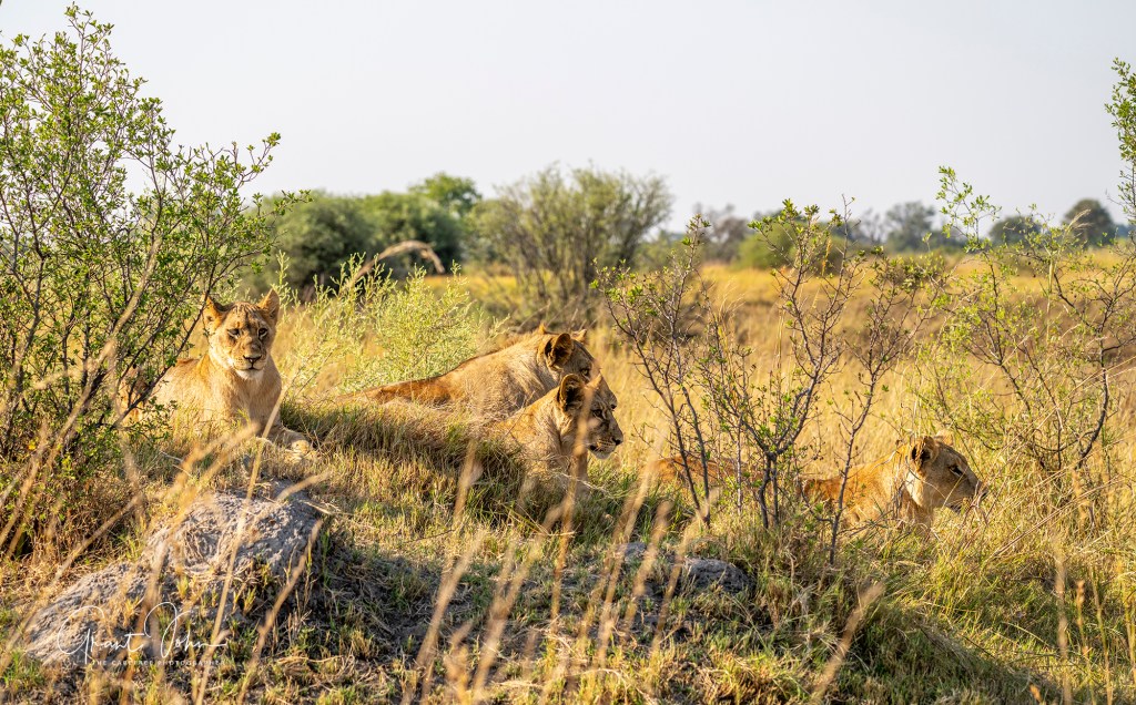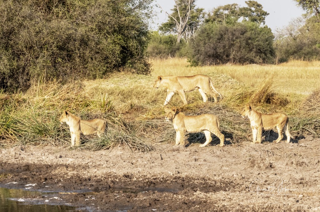 On our first safari drive of June’s visit to Botswana, we experienced several hours of a pride of lions typical morning. This pride consisted of two adult females and several cubs. The male did not show up for some time. Here are a few shots of the walk through the terrain.