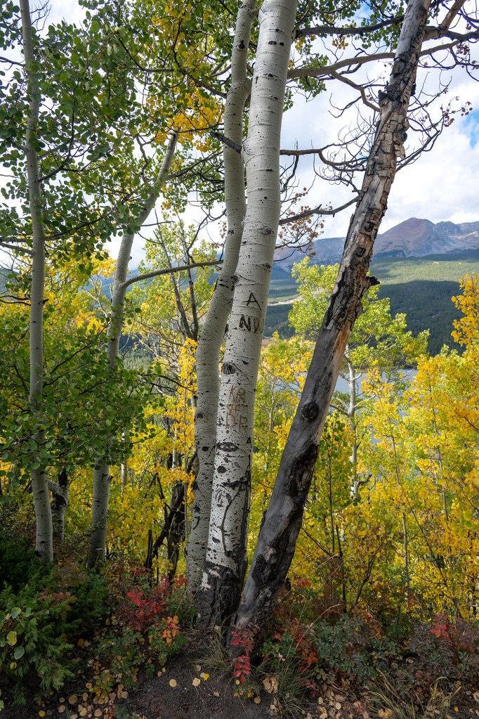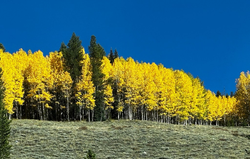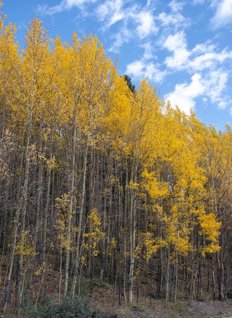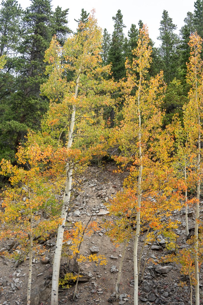 Breckenridge is one of our favorite places to visit. This is particularly so in mid to late November, when the as;pens are in the process of changing color from green to yellow to – in some cases – orange/red. At this time we often drive up the road on the SE end of town up to Boreas Pass. This is a paved road that turns at some point to gravel, and is a favorite road for hikers, bikers and walkers, as well as drivers. Here are a few of this year’s images.