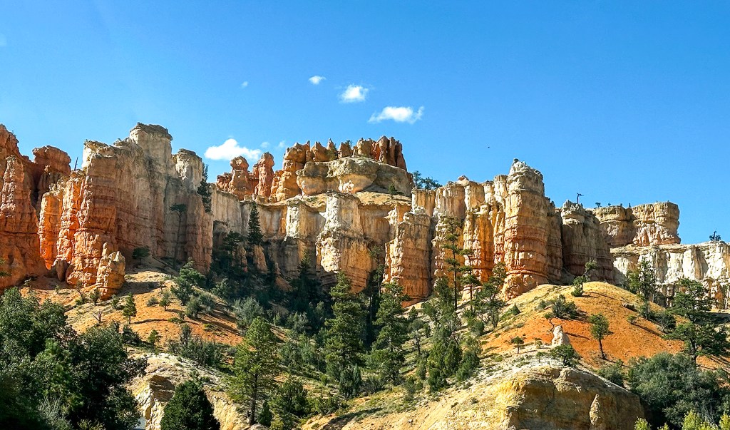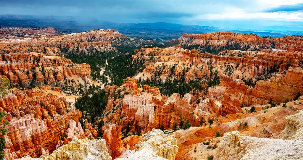 Bryce is a top ten national park, one of several in Utah. It was discovered and named after Ebenezer Bryce, an early settler in the area, in 1874. It became a national park in 1928. The major feature of the park is Bryce Canyon. This is not a typical canyon, but is a collection of giant natural amphitheaters. They are distinctive for hoodoos – natural geological structures formed by frost weathering and stream erosion. The colors are dramatic with reds, orange and yellow colors.