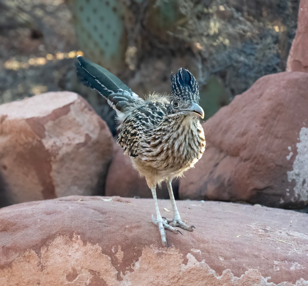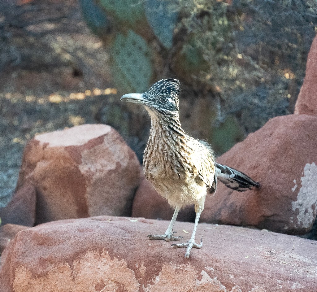 We stayed three nights after Zion with friend, who have a weekend place in the desert outside St. George, UT in a place called Ivins. While we really enjoyed the visit with them, their patio offered wonderful views of bird life, including a quite friendly roadrunner, as well as colorful cacti and a chipmunk.