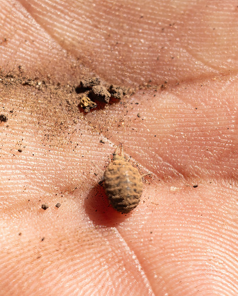 The ant lion is the larval stage of the lacewing fly. They construct conical pits in soft sand and wail at the bottom for prey (typically small ants) to slide in. Prey are taken in strong jaws and sucked dry.