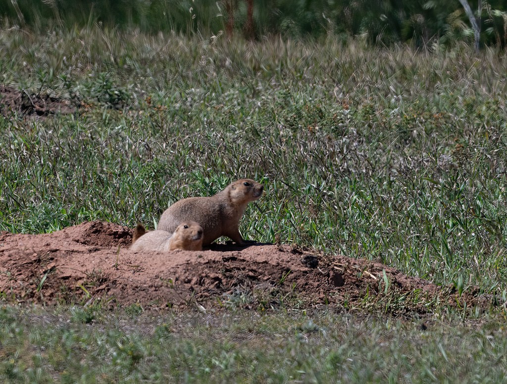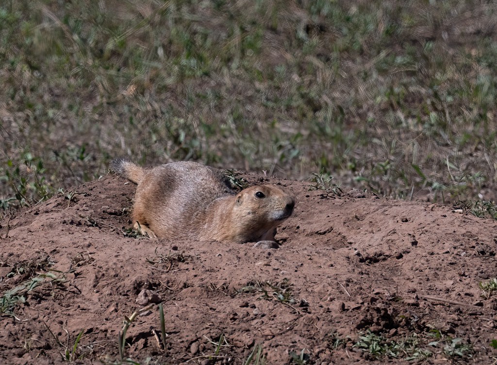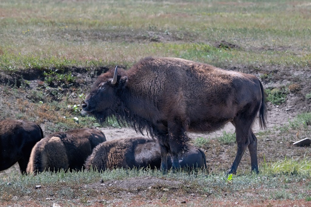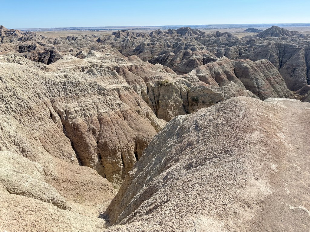 We approached the east entrance to the park by driving Route 44 from the city, and got great long views of the hills, and the resident herd of bison. We started our tour at the Ben Reifels Visitor Center, which contains a ranger station, a movie theater, a museum and a gift shop. The we drove along the Loop (SD 240) Road, which wanders along the base of the hills, the up and down through the outcroppings. The geology is quite fascinating, and the dozen or so overlooks and trailheads offer differing, unique views and a number of hiking trails. Unlike many parks, Badlands allows hiking anywhere within the park. We then drove a few miles beyond the paved area along Sage Creek Overlook road, which offers several overlooks with views of grasslands, bison and lots of prairie dogs.