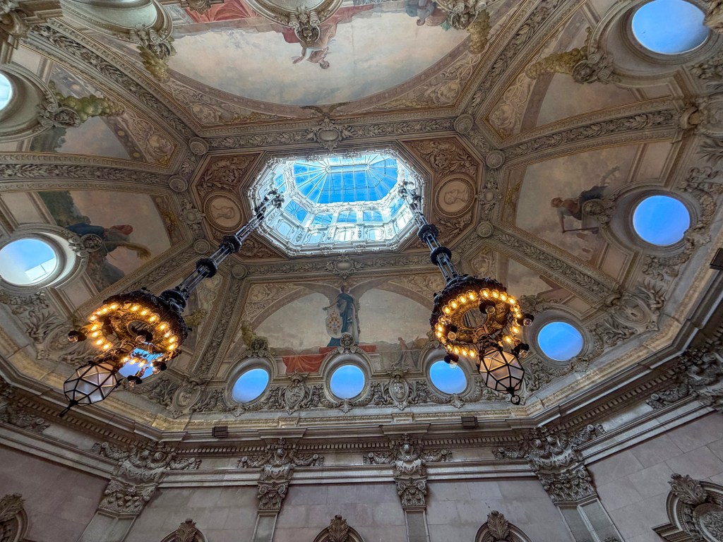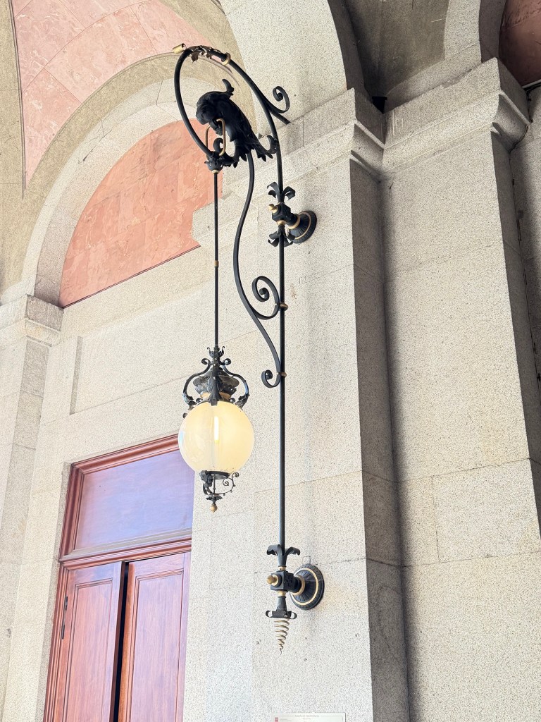 We flew into Porto via Frankfurt on Lufthansa. and stayed three nights at the Pousada do Porto on Rua das Flores. This charming little hotel was on a very busy pedestrian street just down the road from the train station. The first evening we had snacks (tapas) at a small nearby cafe. The next day our guide Sofia walked us down the street to a building known as the Stock Exchange. This building was the basic place of financial transaction in the past, and serves now as a center of cultural life in the city.