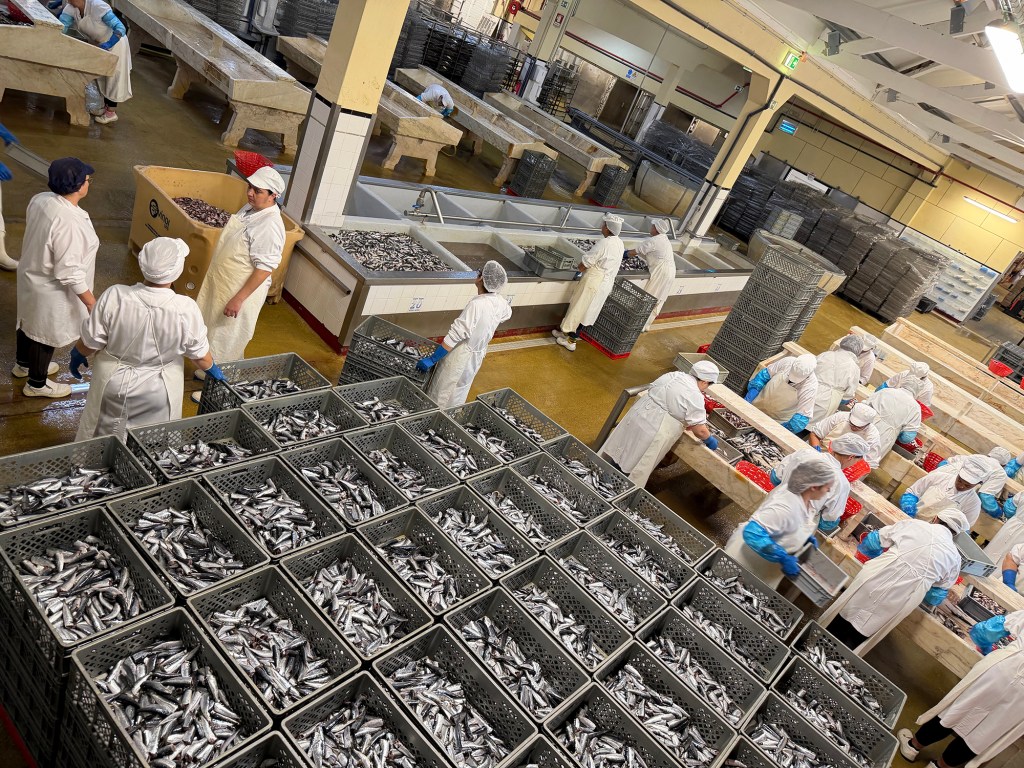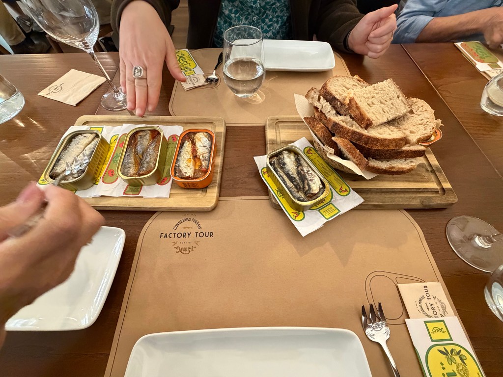 On our second day we drove to a nearby town called Matsosinhos, where we met our guide for the day, a sweet gal named Maria. She was actually a marine biologist by training and experience who has started a guiding service with her husband. She accompanied us on a tour of a sardine canning factory named Conservas Pinhais. We had the pleasure of seeing the sardine cleaning, packing and canning, all done by women. At the end we were able to taste the different sardine offerings, which were excellent given the top quality and freshness of the fish.