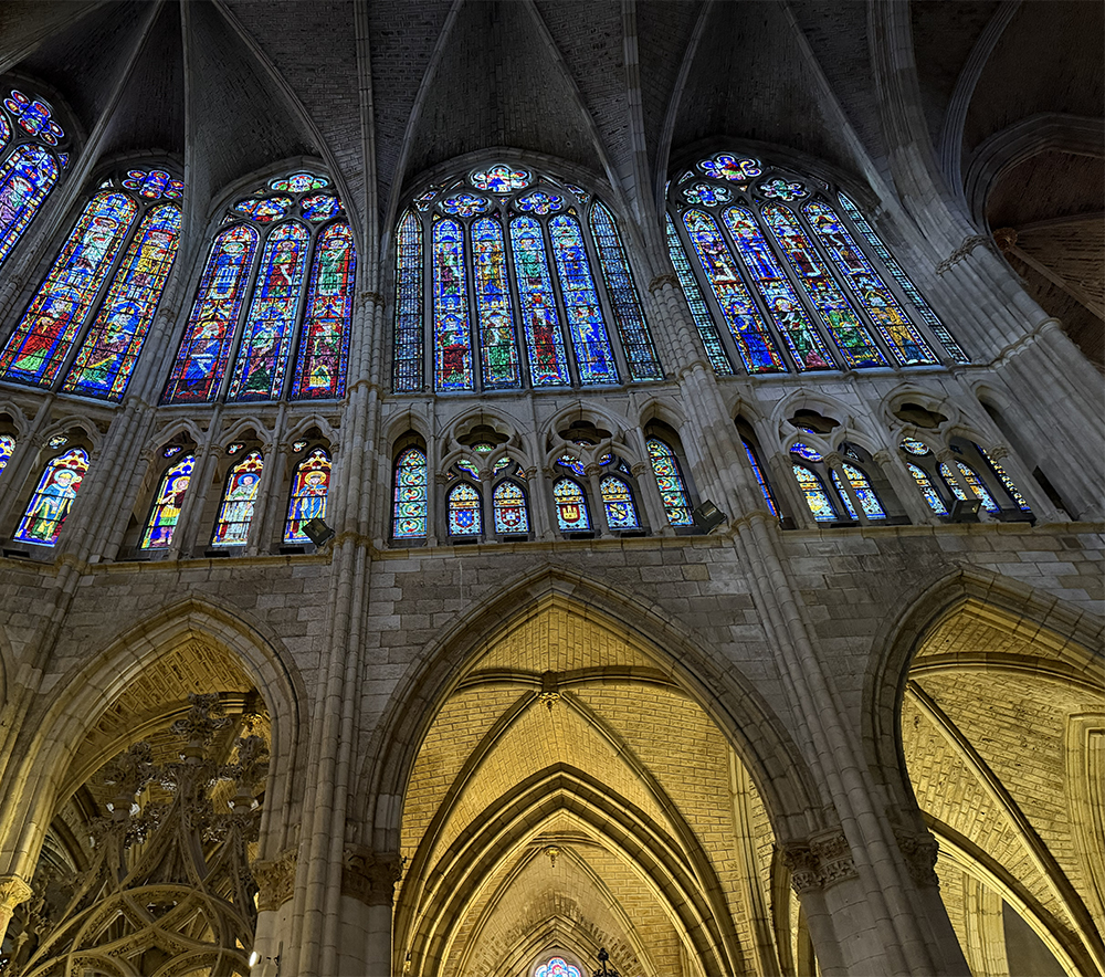 Santa Maria de Regia de Leon Cathedral is a Catholic church which was initiated in the 13th century. It is one of the greatest works of the Gothic style, with French influences. It is mostly known form taking the “dematerialization” of gothic art to the extreme, that is, the reduction of the walls to their minimum expression to be replaced by stained glass, constituting one of the largest collections of medieval stained glass in the world.