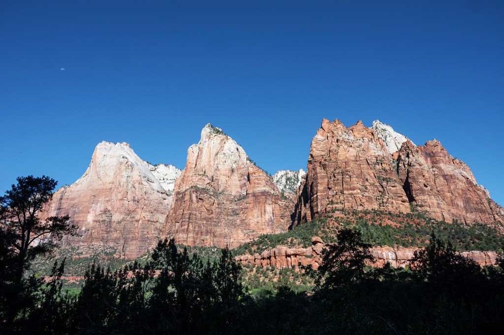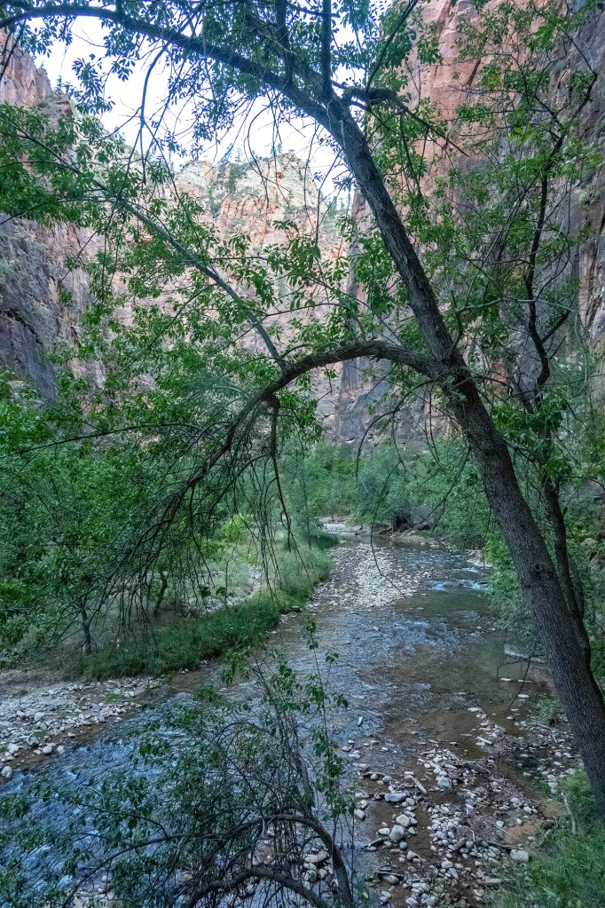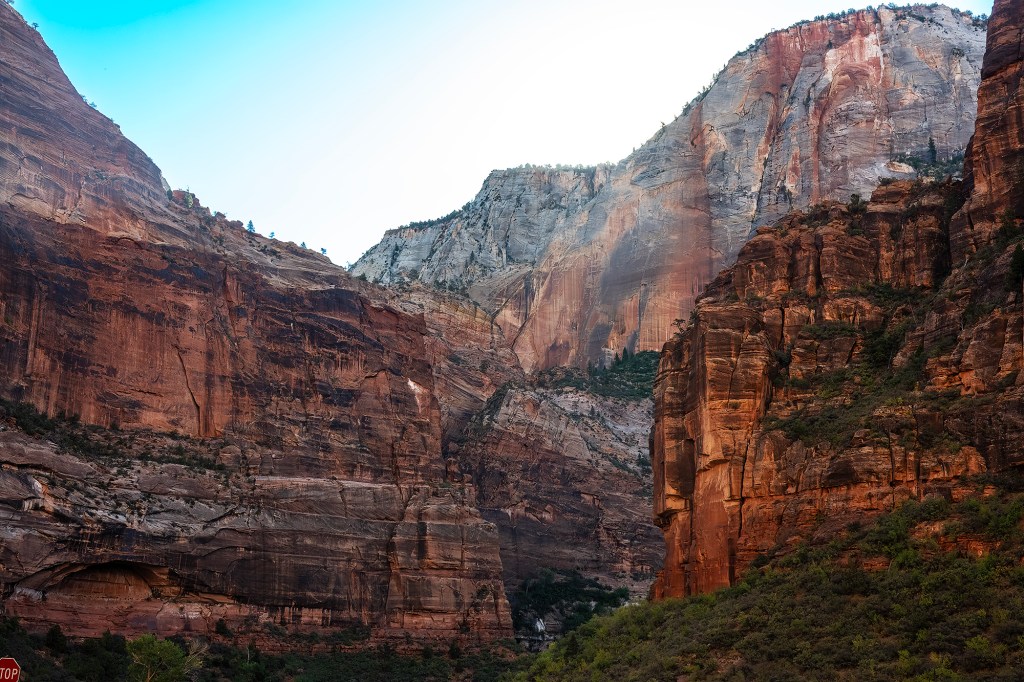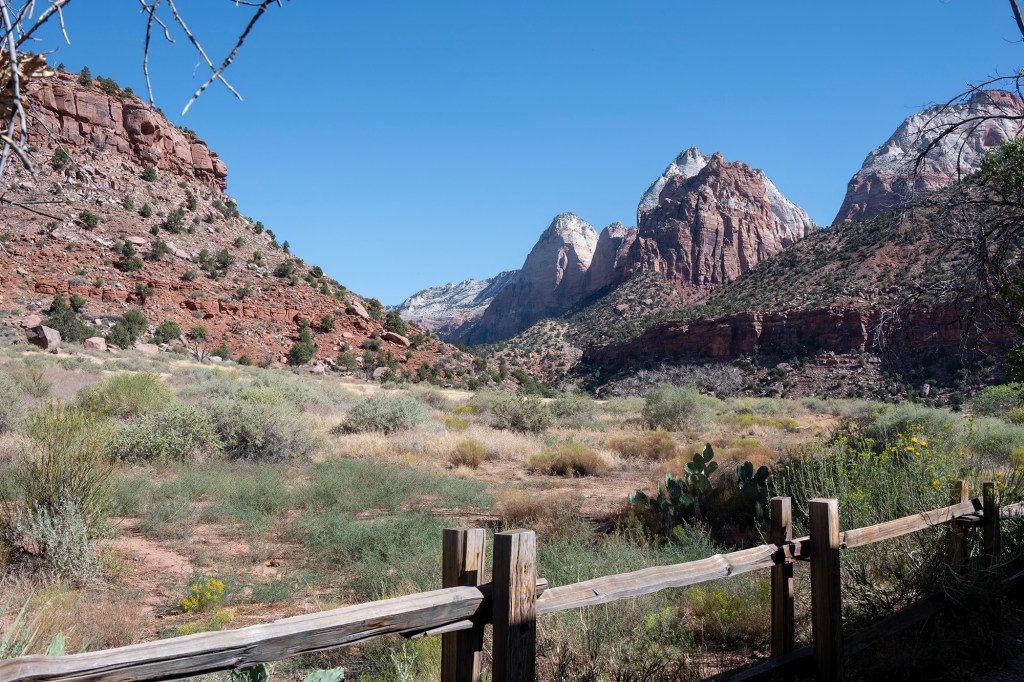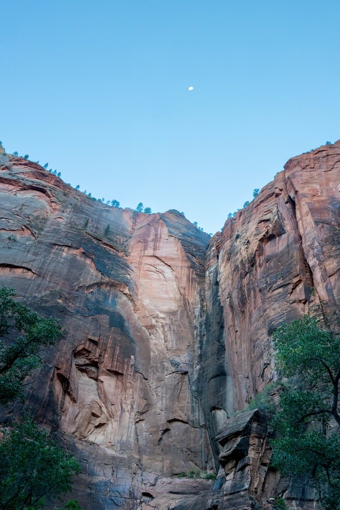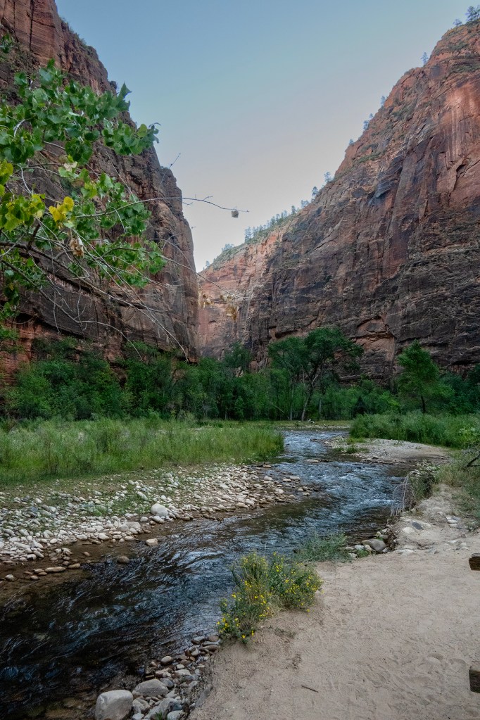 Zion, one of the US’s most popular parks, is located at the intersection of Three major ecosystems – Mojave Desert, Colorado Plateau and Great Basin Valley. It was established as a national park in 1919. The park is essentially a narrow valley in the midst of very tall formations, with the Virgin River flowing through. The river initially flows through a narrow slot canyon 100′ below sandstone cliffs. This section, called the Narrows, is a very popular hiking location which offers the experience of wading in the river for as far as six miles up a much longer canyon.