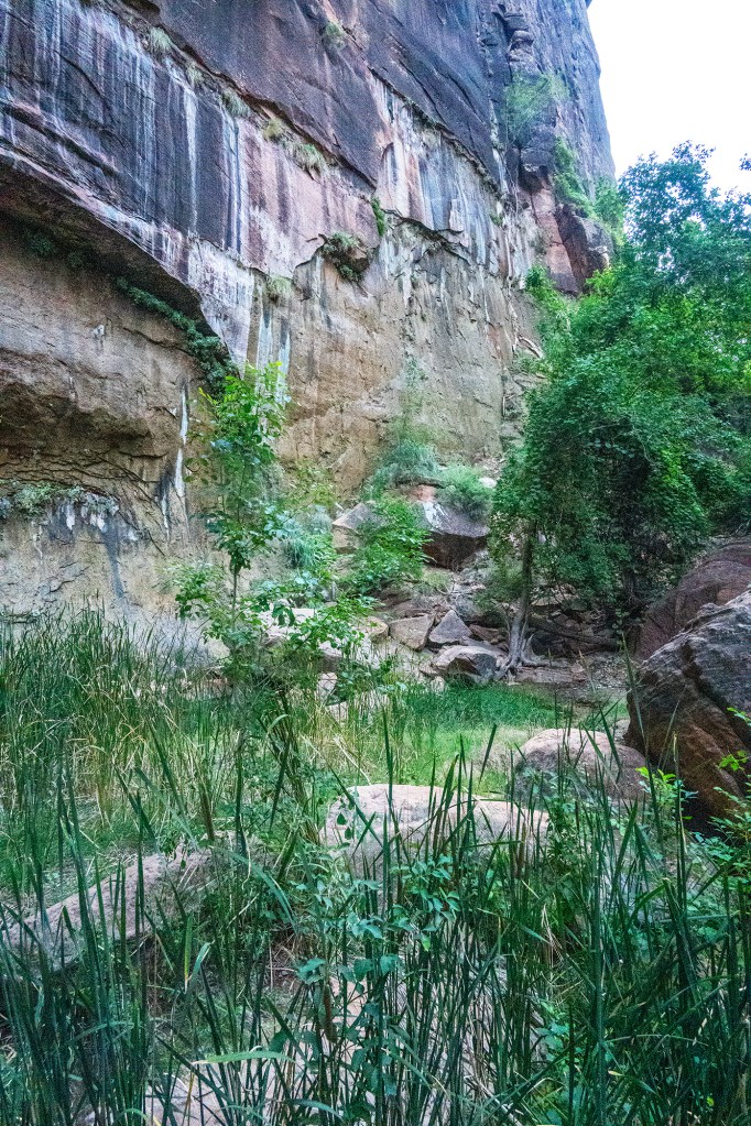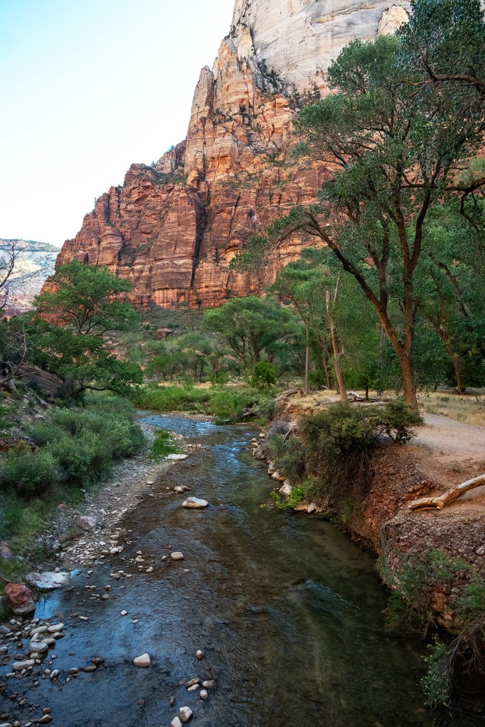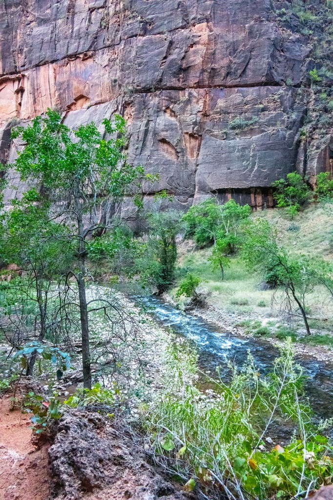 The main visiting area is the first six miles of the canyon, where the cream/pink/red sandstone cliffs soar far above the valley floor. There are four life zones in the park – desert, riparian, woodland and conifer forest. The end of the shuttle ride is the Temple of Sinawava, where a one mile trail then leads to the Narrows. There are some seven hiking trails in the park, from short to six miles long and steep.