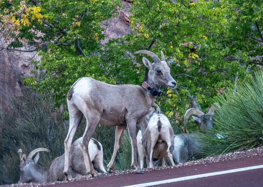 The main road from Springdale runs past the visitor center, climbs via switchback about five miles to a 1.1 mile long tunnel on the way to Mount Carmel and beyond. There are several viewpoints on the way up and beyond the tunnel.