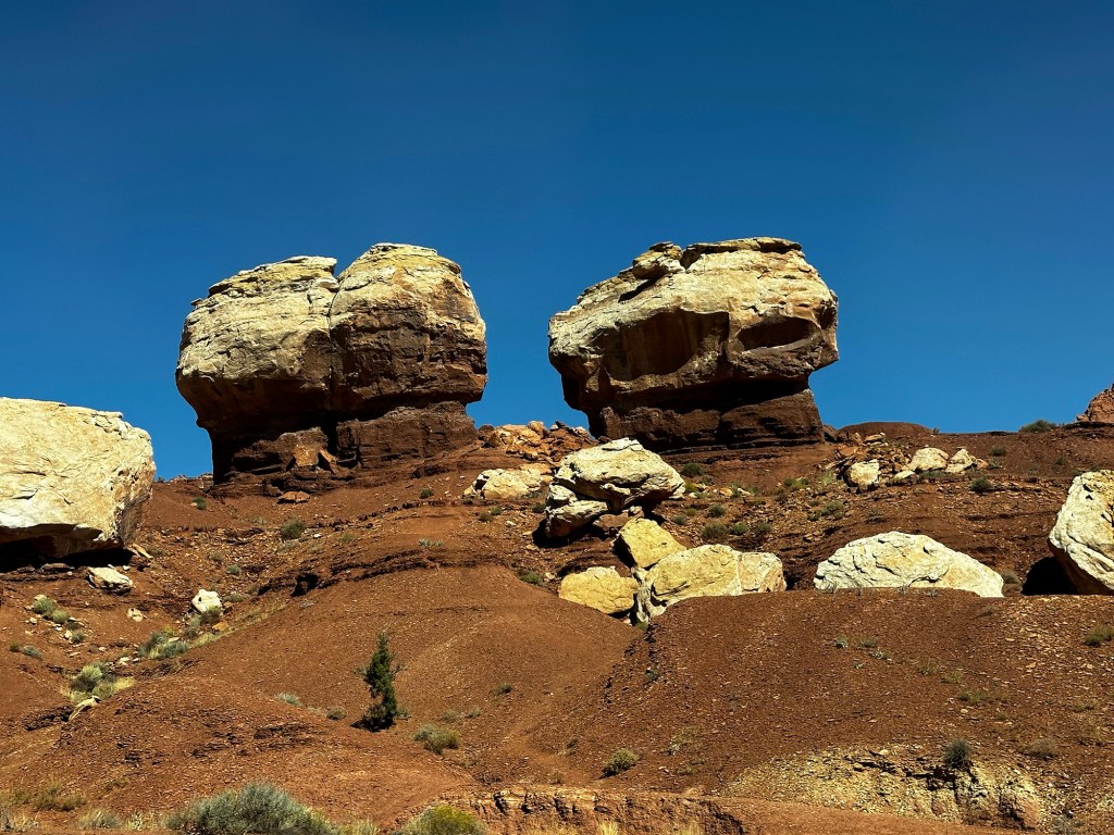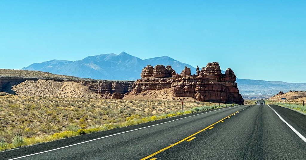 One evening we drove northeast of Moab to have dinner at the Red Bluff Inn, which sits right on the river about 10 miles from Moab. The terrain along the drive was incredible, and the following images were taken on my cell from the moving car.