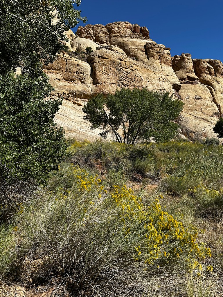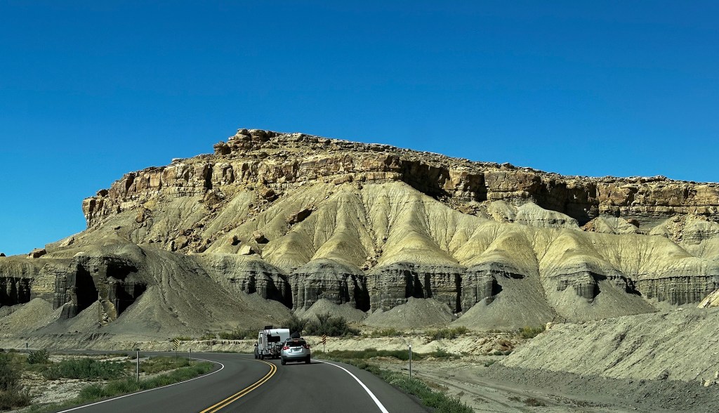 We left Moab and Arches and headed for Bryce National Park. Our route took us down 24S from I70 west via Hanksville and then through the narrow part of Capital Reef at Fruita. We then cut south on 12 to Boulder and Escalante to Bryce City. The scenery was spectacular down all along 24. The road then climbs to 11,313″ over Boulder Mountain and through the Dixie National Forest.